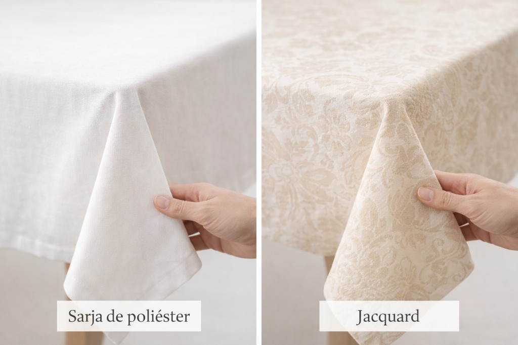 O Jacquard é perfeito para quem quer sofisticação mesmo em ambiente externo. Por ser um tecido mais encorpado e estruturado, ele pesa um pouco mais — o que ajuda a reduzir o movimento causado pelo vento.